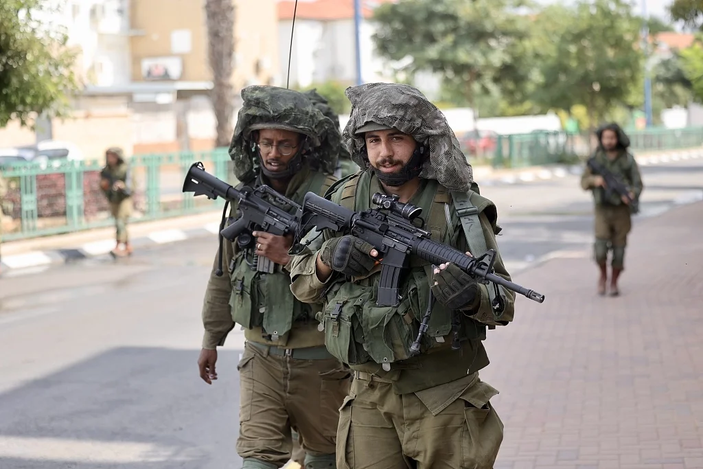 当地时间2023年10月11日,以色列斯德洛特,以色列安全部队在街道上巡逻。视觉中国 图