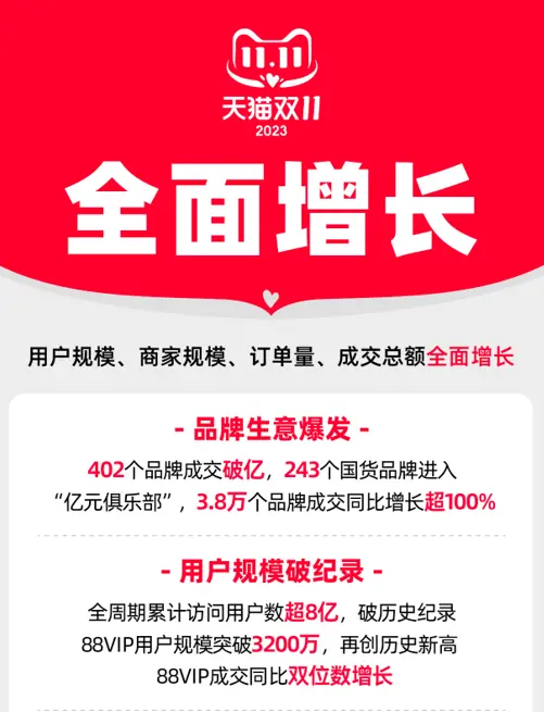 正如淘天集团CEO戴珊11月11日晚所说,今年“双11”成功印证了消费复苏的良好势头,反映出国内市场长期繁荣的趋势。