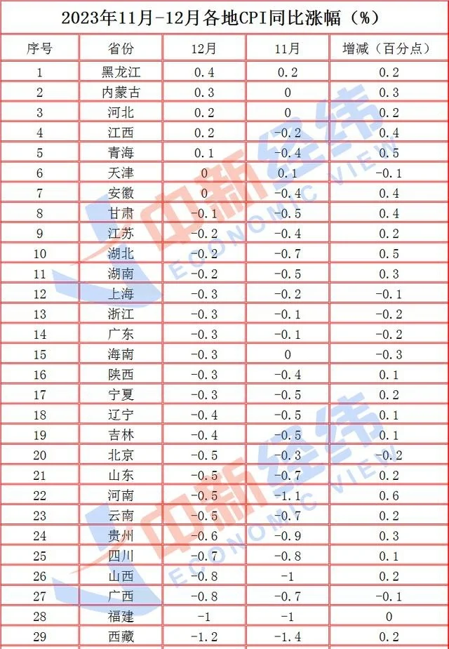 31省份12月CPI出炉:24地物价下降,黔豫晋“九连降”