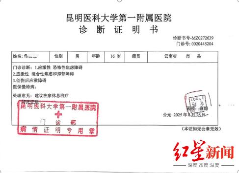 近日,耿女士向红星新闻记者反映,自己的儿子在云南省富源县一所中学读初一时,被班主任李老师“长期当众踢打、朝头上吐口水、揪耳朵、骂臭狗屎……”,患上“创伤后应激障碍”“应激性焦虑抑郁”……至今不敢上学……而耿女士丈夫也是该校老师。