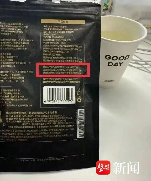11月16日,扬子晚报记者以消费者身份,就此事向茶颜悦色和古茗客服人员进行了咨询。茶颜悦色工作人员介绍,该品牌与古茗并无直接合作关系,该款茶叶确实是重新贴标的代工产品,属于行业正常情况,产品质量均合规,消费者可放心购买。