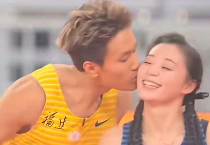 福建队拿下金牌的同时,队员何锦櫶一个箭步冲向亚军四川队的“田径甜妹”刘峡君,在央视镜头前大胆献吻,瞬间引爆全场!