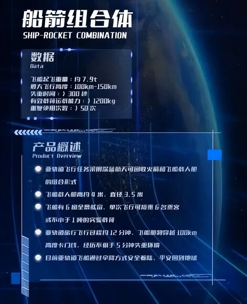 关于此次售卖的商品,该商业航天企业曾在微信公众号上发布了产品概述——“亚轨道旅行飞行过程约为2分钟,飞船将穿越100km高度卡门线,经历不低于5分钟失重环境。”