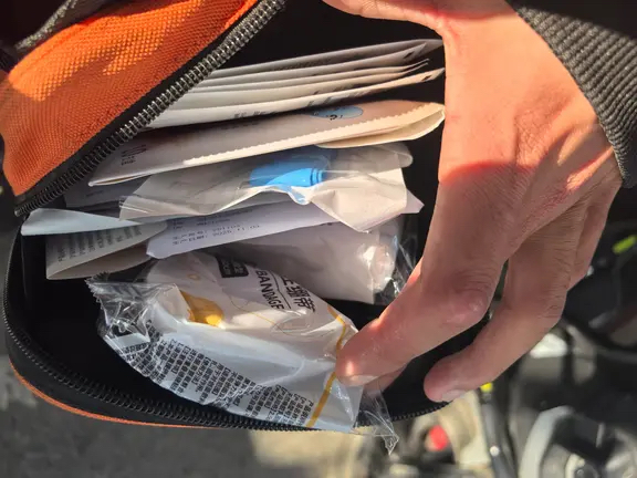朱先生告诉记者,饿了么最近成了淘宝闪购,还换了新的制服,并且配上了急救包,急救包里有“一次性止血绷带、止血贴、创口贴、碘伏、棉棒,还有一些三角绷带、弹力绷带。”事后,站里联系他写个事情经过传上去,之后可能会有表彰,“没什么的,救人是应该的。”