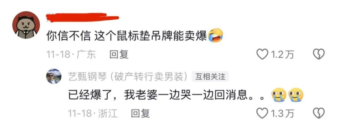 近日,众多消费者在社交平台发文,称在网上购买的服装除了“货不对板”的版型和“忽大忽小”的尺码以及超长的预售,又多了一个让人忍不住吐槽的“槽点”——“超大吊牌”。 这些“超大吊牌”并不能输出品牌标识,也不具备功能装饰。其被广泛使用,完全是为了让消费者无法在剪掉它之前穿出门,以避免商家衣服从“七天无理由退货”变为“七天免费试穿”。现如今,此类吊牌在高退货率的女装品类尤为常见。 记者关注到,在退货率相对低很多的男装品类,有商家也给男装挂上了“超大吊牌”,但这家老板挂的“超大吊牌”却是鼠标垫、袜子、烟灰缸等男士用品,老板表示剪掉“吊牌”禁止退货,看似“吊牌”实则赠品,此举引发众多消费者下单购买产品。记者通过后台留言联系上店铺老板王先生,了解其背后运营思路和经营情况。 因为一条玩梗评论 开了一家男装网店 “当初真是因为看到网友们玩梗,才开的这家男装网店。”王先生告诉记者,“我也是在短视频平台刷到了现在有很多吐槽女装大吊牌的视频,其中我看到一个网友在玩梗,大致意思就是‘为什么不给男装也弄上超大吊牌,最好是那种400X900,厚度4的大吊牌’,我心想这说的不就是鼠标垫么!” 王先生起初是在线下从事钢琴买卖的相关业务。在网上偶尔也会发一些和自己工作相关的出镜视频。但由于钢琴行业整体下滑,自己的生意也面临破产,视频流量也不理想,便萌生了转行的想法。 直到11月,王先生看到了网友们关于“超大吊牌”的玩梗评论,王先生思考后发现是有可操作性的,不想错过机会的他便开始联系生产厂家,火速开启男装电商的事业。 11月14日,王先生在自己的社交账号发布了一条文案为“谁说吊牌就一定是长长吊牌”的带货视频,他将男装的吊牌做成了一次性烟灰缸,随即收获了三万点赞和7千多条评论,反响热烈,网友们纷纷为王先生的创意点赞。当时在评论区,王先生就有回复网友:鼠标垫已经在做了。 11月18日,王先生再发视频,相同的内容,相同的文案,只不过这次吊牌已经换成了超大号鼠标垫。视频收获近16万点赞和1.8万条评论。至此,王先生账号的评论区变成了“许愿池”。 “老婆一边哭一边回复消息”, 靠“赠品吊牌”促成高转化 “超大鼠标垫吊牌”反响热烈,网友们对王先生这种“听劝”行为连连称赞。有网友评论表示“不管卖啥都高低买点儿”。王先生也在评论区表示“鼠标垫吊牌的衣服已经卖爆了,老婆一边哭一边回复消息。”  “第一批收到货的消费者反响还是非常好的,因为本身衣服质量也不差,再加上有鼠标垫的加持,几乎没有退货,也没有差评。”王先生告诉记者一个让他印象深刻的事情,“有个顾客买的裤子拉链可能有点小问题,像往常很多消费者就会申请仅退款之类的‘薅羊毛’,但是这位顾客就选择了退货退款,我也顺带着把鼠标垫送给他了,他后续又下了一单。” 王先生的网店主要经营男装,价格从69元到499元不等,其中销量最好的是一款价值69元的薄款打底衫,随衣服还会附赠一个超大鼠标垫。从店铺信息可以了解到,店铺开店不到一个月,近三十天加购超5000件商品,近30天浏览量超300万,好评率100%。  谈到自己的店铺,王先生略显兴奋,“其实现在我的转化率是非常高的,因为大家都是看到我们的回复都比较真诚,然后都会奔走相告。聊天截图发到评论区里面去,然后大家就互相转发,所以现在的单量还是很高的,我做这个男装的第五天,就每天都有很多新人下单,目前一天能卖200多件,数量还在不断增加。” 记者注意到,单“超大鼠标垫做吊牌”一条视频,转发量就超过了5.8万。 鼠标垫吊牌爆火后,王先生便积极在评论区寻找吊牌的灵感,王先生告诉记者,目前,顾客购买商品可以选择鼠标垫、烟灰缸、袜子、内裤其中之一作为“吊牌”,随衣服附赠。只要确定收货,“吊牌”就归顾客所有。王先生表示,后续还会增加刮胡刀、擦车布、洗脸毛巾等更多的“赠品吊牌”,以满足网友的需求。 不被流量带偏, 希望能给行业带来一些改变 而对于突然来的流量,王先生也表示淡然,“其实现在有一些比较成熟的商家已经开始模仿我了,但是流量我能承接一部分就行,因为现在也是刚起步,也算是给男装商家们开了一个好头,只要是能给兄弟们谋福利,大家不一定非要从我这买。” 王先生告诉记者,后续等店铺各项资质完善以后,也会开始直播带货,同时也会增加更多的男生用品供消费者选择。 记者注意到,王先生的视频评论区,网友们互动都非常良性。其中也有些网友们对于吊牌的“离谱”许愿。有想吊牌换成游戏显卡的、换成摩托车的、换成汽车的。  对于这样的“许愿”,王先生也是会心一笑表示都看到了,“这些都是兄弟们的美好愿景嘛,当然后期等我做大之后,后期也会考虑和商家做一些合作,给兄弟们搞一些福利。” 王先生的店铺也反应出了当下的网购格局正悄然发生变化,在以往的电商行业的认知中,成年男性用户的消费能力和购买能力往往是偏低,但近几年的多方消费资料显示,男性消费不仅在消费占比、消费品类上实现突破,不同平台和区域的数据均印证了 “他经济” 的强势崛起,男性正从过往消费市场的边缘群体转变为核心力量。 今年“双十一”期间,在淘宝上搜索“男装”并采集销量最高的1000件单品之后会发现,不管在均价还是价格中位数上,男装