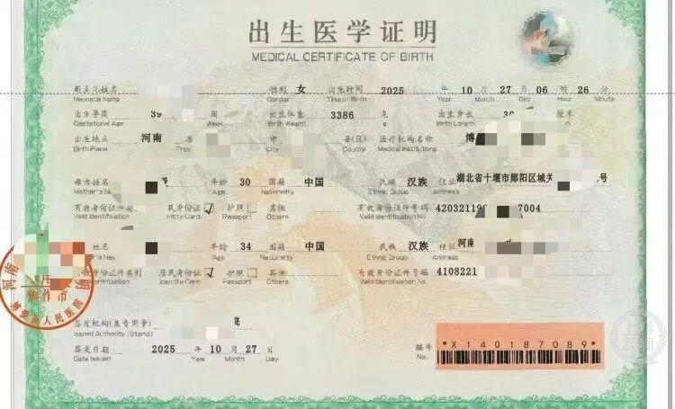 记者花费600元定金买到的虚假出生医学证明。图片来源/虚假出生证明截屏