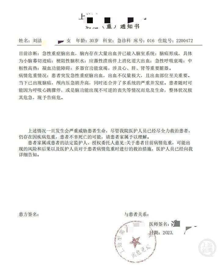 当晚,记者又询问对方能否做死亡证明。对方答,做不了,但能做病危通知书。填完相关信息后,对方让记者扫支付宝码付款140元。该码收款方全称为“XX彪(个人)”。11月18日上午,对方给记者发来了上海某医院开出的病危通知书的照片,该通知书底部还盖有鲜章“上海市某医院病危通知书”。