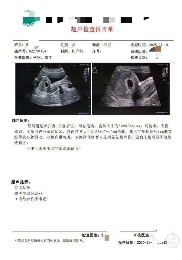 案件中,尹某某给被骗小伙申某某发去了3张假B超单。武汉市一名三甲医院妇产科医生看完这3张涉案假B超单的照片后告诉上游新闻记者,初一看很真,普通患者不容易分辨,如需辨别真伪需要联系医院工作人员。