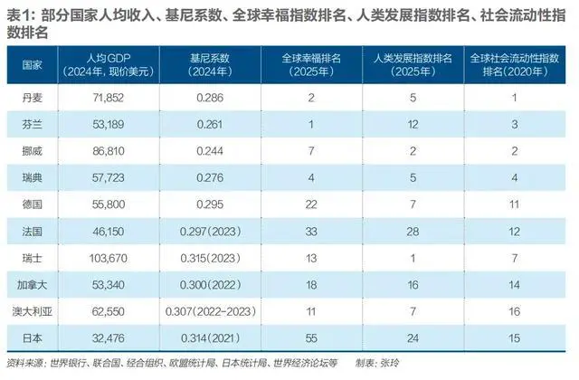 笔者在2021年9月6日《财经》杂志上发表的《全球视野下的共同富裕:聚焦高品质包容性创富》一文中,提出实现共同富裕需要跨越三道坎:第一坎是跨越中等收入陷阱,迈入高收入经济体行列(根据世界银行2025年数据,全球共有87个高收入经济体);第二道坎是从高收入经济体进一步跻身发达经济体(根据IMF 2025年数据,全球共有41个发达经济体)。在41个发达经济体中只有少数几个国家实现了共同富裕,包括部分西欧国家(北欧四国、德国、法国、瑞士、卢森堡),以及澳大利亚、加拿大和日本等。其中,一些发达国家由于人口和地域规模比较小(如瑞士、卢森堡),并不具备追求富强的必要条件。