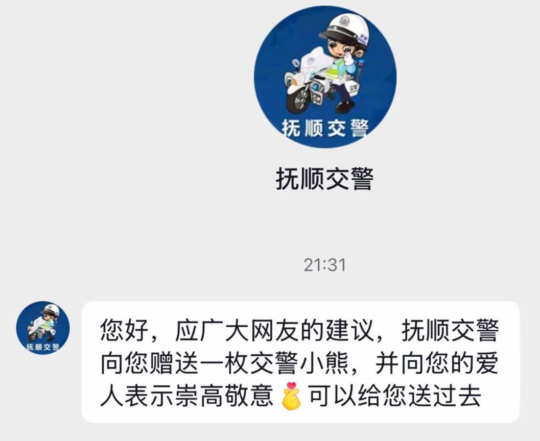 抚顺市公安局交警支队官方账号送当事人交警小熊
