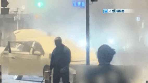 1月14日晚,一辆新能源汽车行驶至昆明市春城路与环城南路交叉口时,引擎盖内突然窜起大量烟雾并燃起明火。