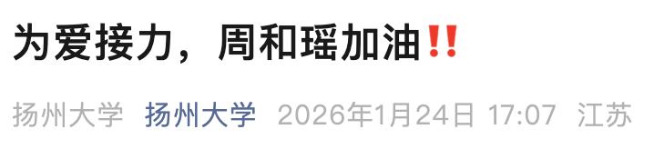 为周和瑶加油打气的推文经扬州大学官方平台发出后,一日内就有近4000次转发。学校透露,有不少师生校友,通过相关渠道进一步捐款。