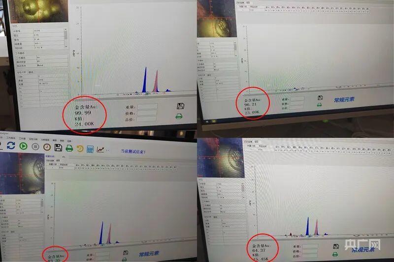 周生生工作人员给李女士的反馈(受访者供图 央广网发) 1月27日,李女士前往清远市清城区某从事黄金回收业务的门店,对福袋挂坠进行光谱检测。“我前后测了七八次,换了好多个点位,特别是刮花的那一面,测了很多地方都不纯。”李女士介绍说,检测过程中,工作人员担心挂坠“刮到了铁”,特意对福袋挂坠进行了清洗,结果洗完之后检测结果还是含有其他物质,黄金纯度依然不达标。