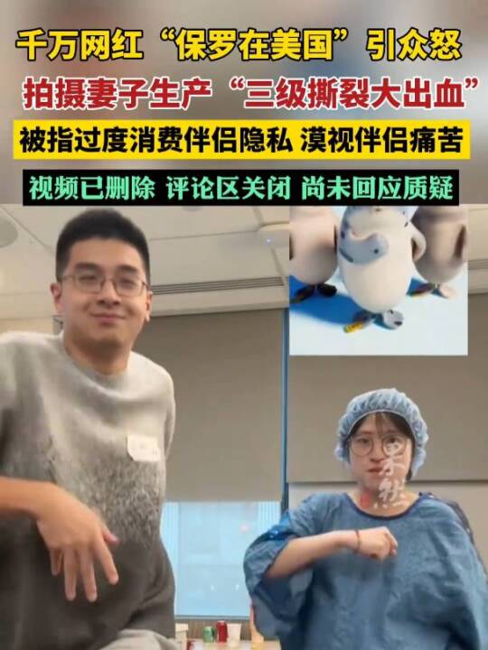 2月11日下午,记者发现,因晒妻子生产过程视频被质疑的千万粉丝博主“保罗在美国”已被平台禁言,其账号主页显示,该用户因违反相关法律法规和政策,已被禁言。  此前报道:千万粉丝网红晒妻子生产全过程!三级撕裂、产后大出血......发布裸露画面引众怒,被指为了流量过度消费伴侣隐私 今年2月,千万粉丝博主“保罗在美国”发布妻子生产视频,称产程长达23小时,妻子三级撕裂、产后大出血,失血量达3344毫升,经紧急手术与输血后脱离危险,母女平安。  期间,保罗全程跟拍,发布含妻子裸露画面的视频,且在妻子大出血抢救时仍持续拍摄,被指过度消费隐私、漠视伴侣痛苦、只为流量。据悉,保罗毕业于名校,定居西雅图,曾被称为“会说东北话的微软产品经理”,靠说东北话走红。截至发稿,其发布的相关争议视频已删除。其主页最新一条视频为1月16日发布。9日当天,“保罗在美国”还曾发布与妻子一起制作“孕肚花瓶”的视频,并在评论区透露了妻子近况:“今天是生完的第11天,甜品大师恢复进度还不错。吃喝拉撒都无障碍,自己上下楼完全没问题,心情也挺好的。偶尔还能出门溜达溜达。” 另据大河报消息,2月10日,博主“保罗在美国”发布的妻子“保罗的甜品大师”在美国分娩的全过程视频引发舆论争议,视频公开裸露画面及抢救细节,视频中还植入了尿不湿广告,被批评“为了流量过度消费伴侣隐私”。但也有网友对该视频表示了支持,认为这个是真实展现了女性生产的不易。 2月10日,其妻子的社交媒体账号“保罗的甜品大师”在评论区回复了一位网友对此事的讨论,她表示“我们是想真实记录生产过程,在记录的过程中没有预料到会发生这些意外,但事后还是想要真实地发出来,让大家看到,也有很多妈妈私信(告诉)我她们的生产经历,有顺利的但也有很多不顺利、惊险的,她们都很感动,也有人说看到了不一样的生产过程,让他们对生产的风险有了更多的认识。” 综合九派新闻、大河报、钱江视频 (来源:齐鲁晚报微信公众号)