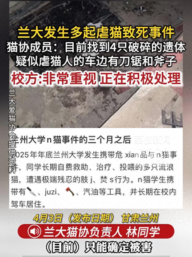 [盐都杂谈] 兰州大学校内发生多起虐猫致死事件,猫协成员:目前找到4只破碎的遗体,疑似虐猫人...