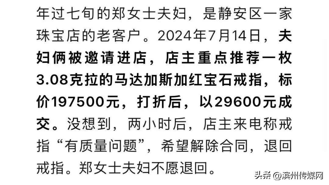 标价近20万的红宝石戒指 老客户以2.96万元的折扣价拿下 原本以为这是对老客户的“福利回馈” 没想到被店主告上了法庭 这究竟是怎么回事?