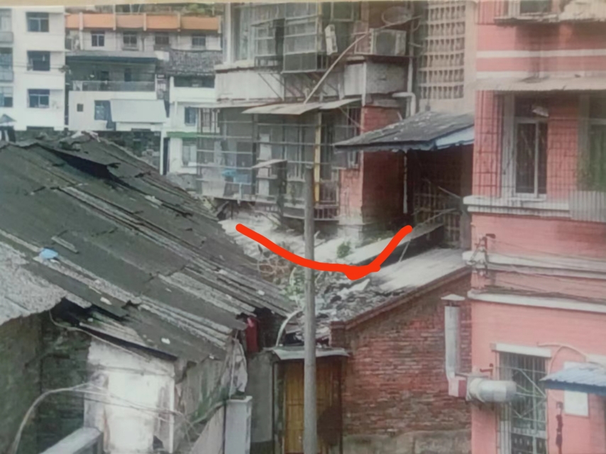 荣县滨河小区,继公共厕所、门卫室变脸(非成套住宅)和物管房变天(被私人违占),忠义茶坊变性(违建变合法)外,红星社与滨河小区附南街181号间阴沟违建棚(红线勾画部分),居然办了沟沟证——非成套住宅。