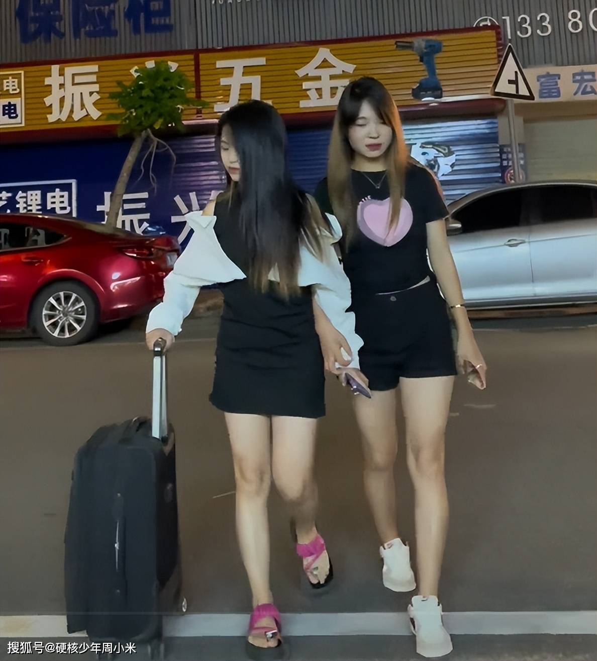 事情发生在广东惠州的一条街道上,2名女生走在马路上,她们也不知道去哪里?