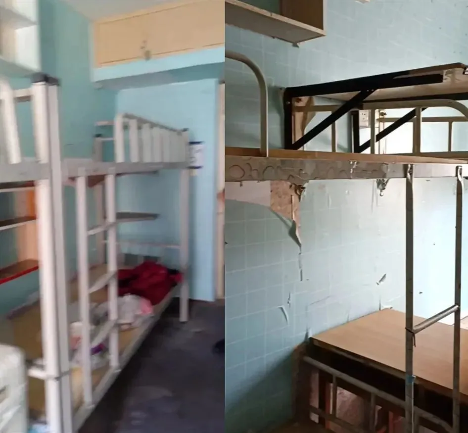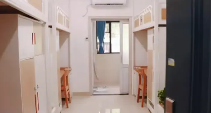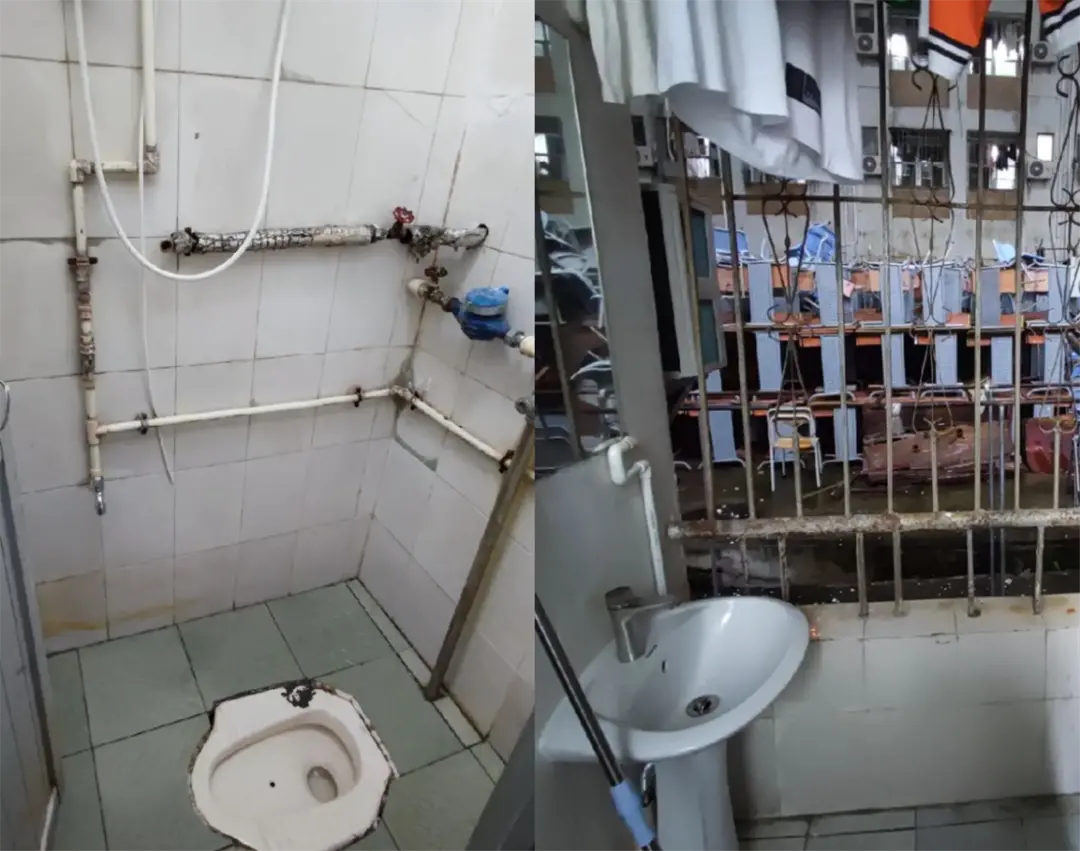 从视频上看其实也就是个大学宿舍平均水平:至少结构上是上床下桌,设施虽然略显老旧但还算干净。