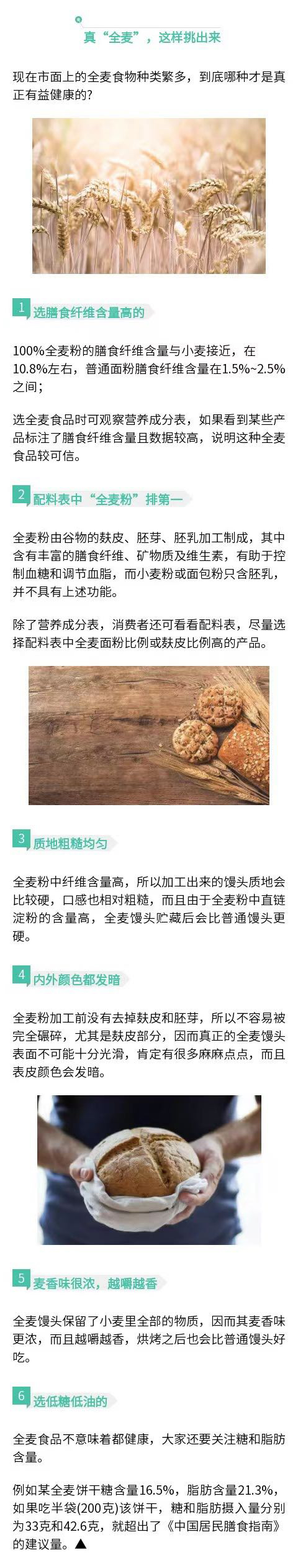 相比以精白面粉为原料的面包,全麦面包含更多膳食纤维、B族维生素及铁、钾等矿物质,可改善便秘,并帮助降低胆固醇和血糖。越来越多的人开始尝试通过全麦面包减肥、控糖,但结果却不尽如人意:减肥的人反而胖了,控糖的人血糖上升了......怎么挑选健康的全麦面包,6个方法教会你。↓↓这4种面包真的建议少吃