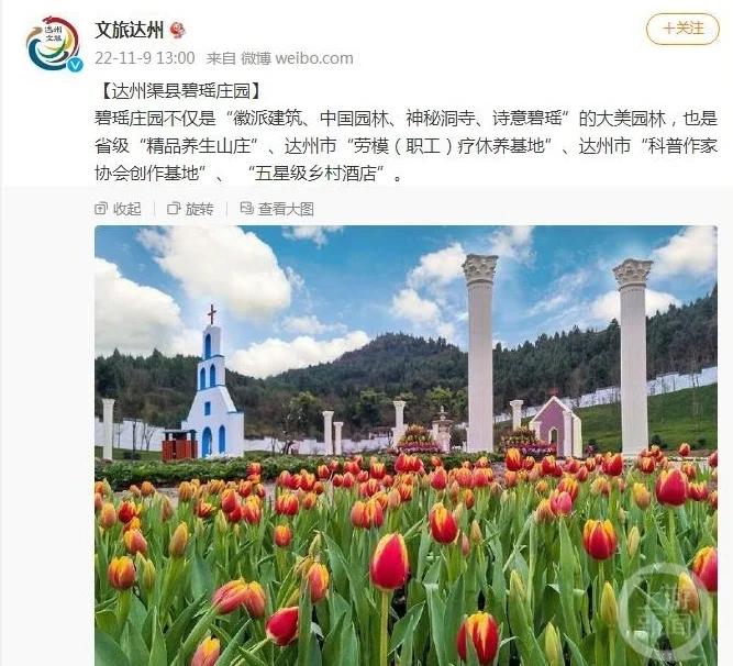 ▲当地文旅局官方微博关于碧瑶庄园的推介。图片来源/微博截图