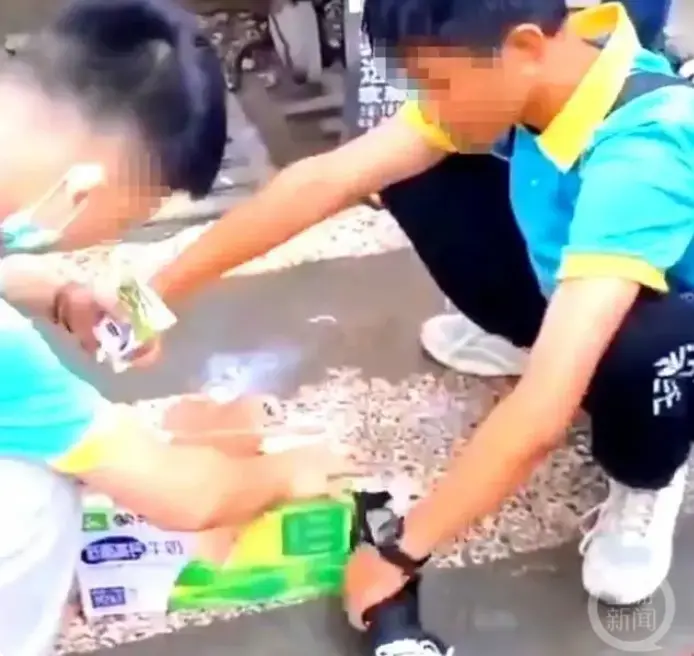 ▲达州外国语学校门口,两名学生一口气喝掉11盒牛奶事件引发广泛关注。图片来源/网络截图