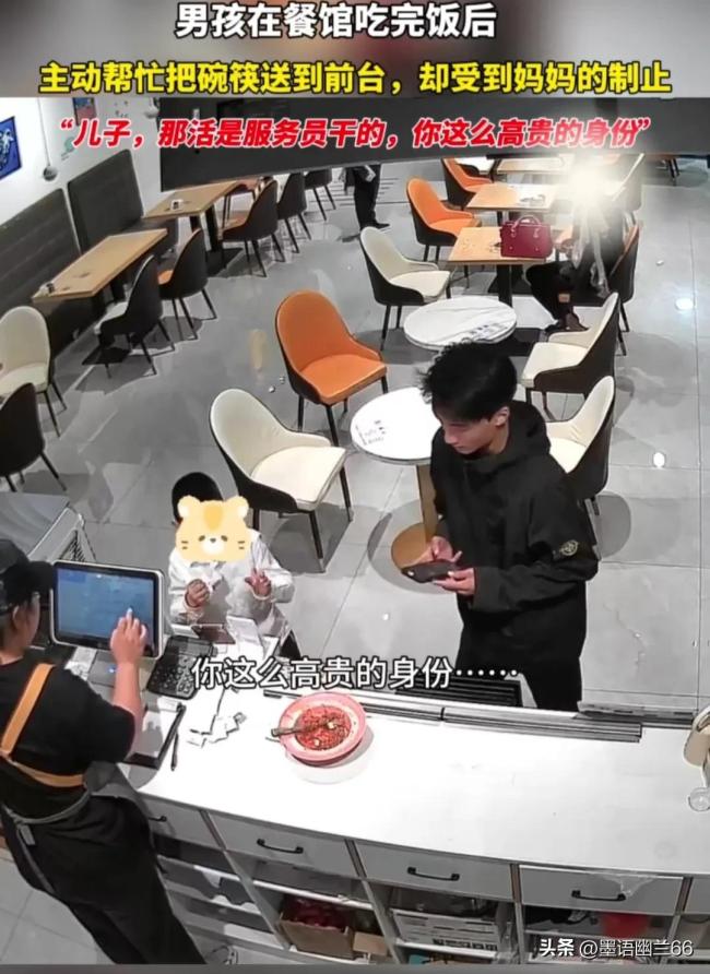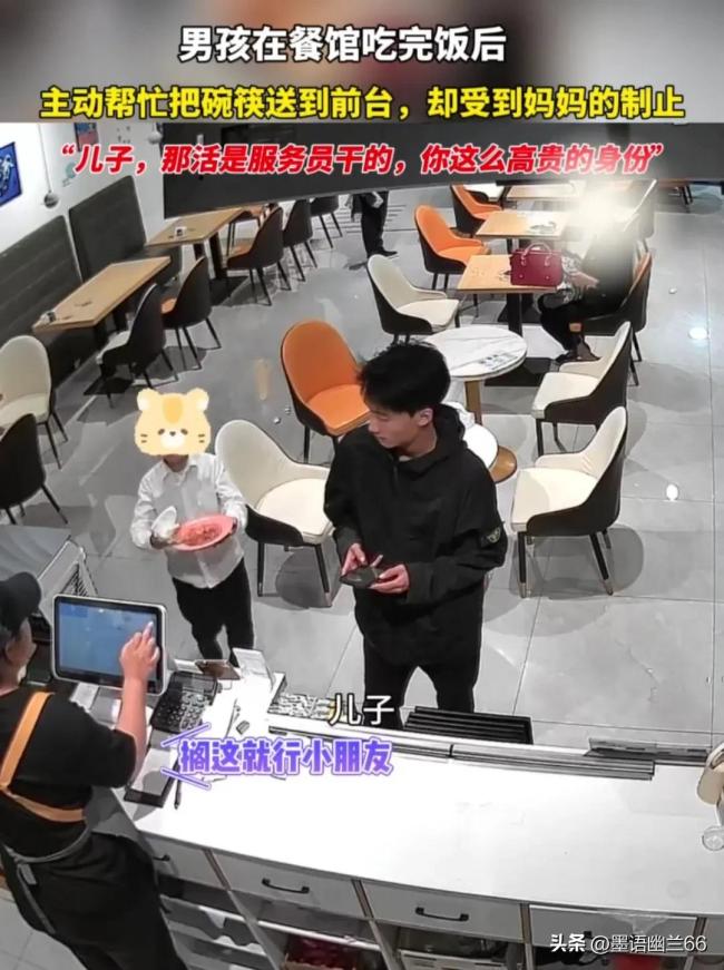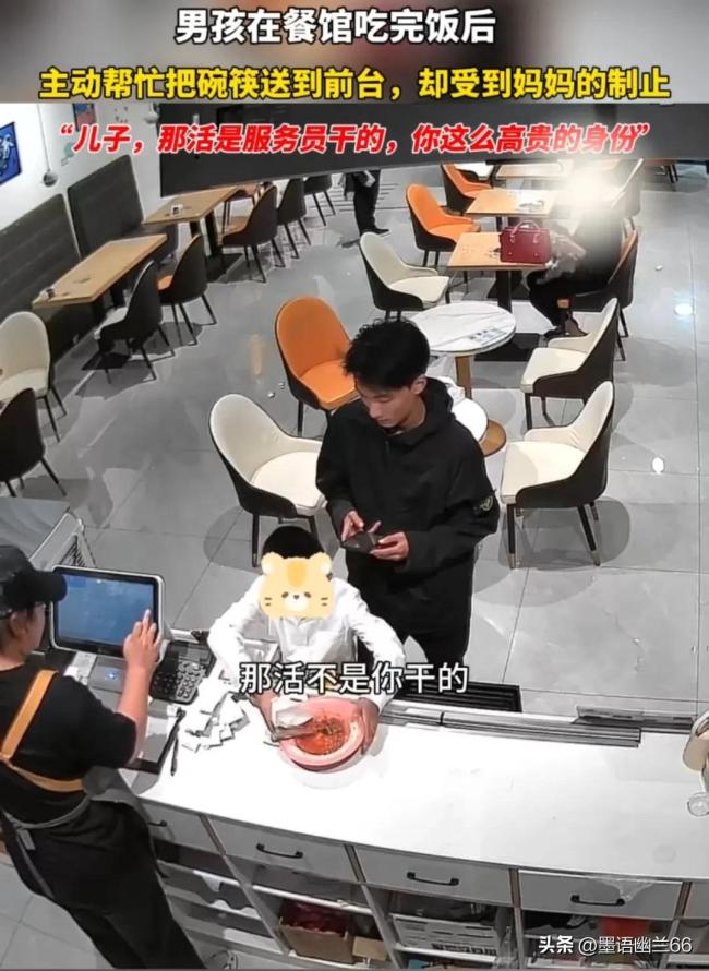 这位母亲说:儿子,那活不是你干的,是服务员干的,你这么高贵的身份…