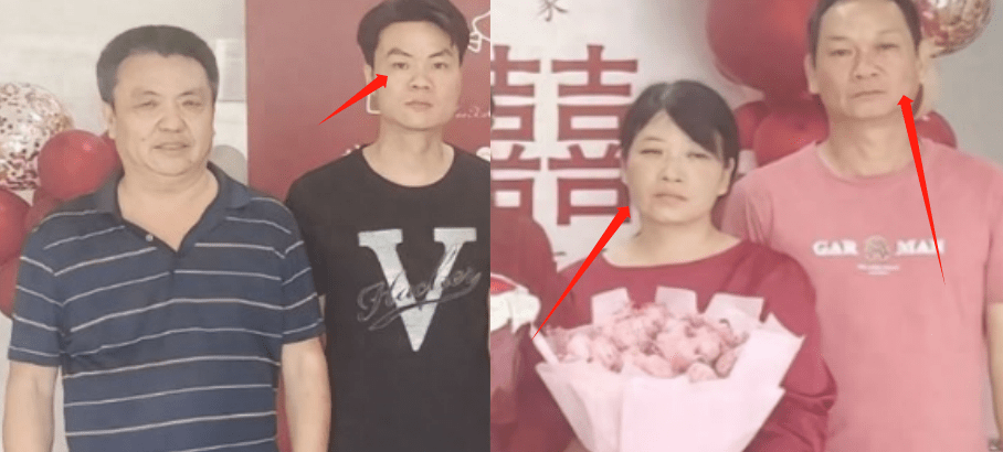 我们可以看到新郎是中间这位穿棕色衣服的小伙,他的眼神迷离,无精打采,右手边的父母亲更是脸上没有一点笑意,十分严肃。