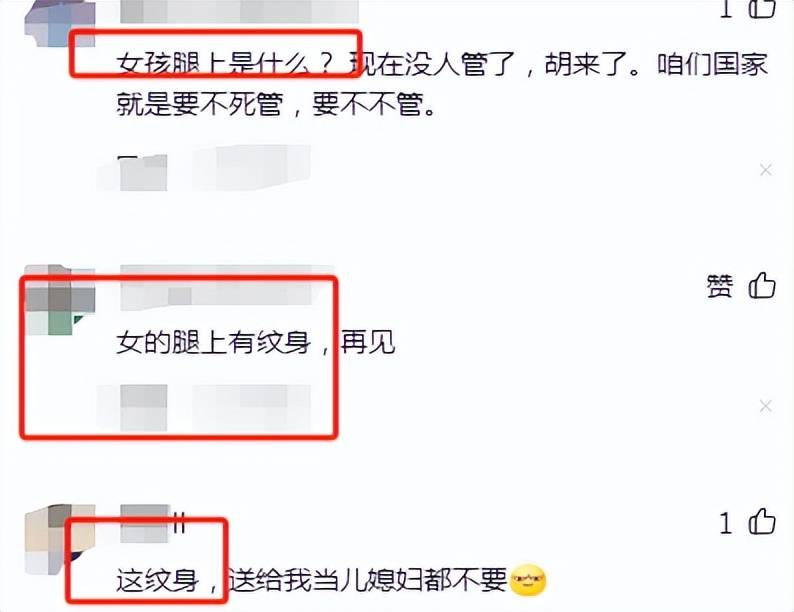 与它相反的则是旁边的新娘,新娘的穿衣打扮就明显成熟了许多,一身红色的装束尽显喜庆和正式,但是值得诟病的是,新娘竟然满腿文身,在红色的半身裙的衬托之下十分明显,对此也遭到了网友们的质疑。
