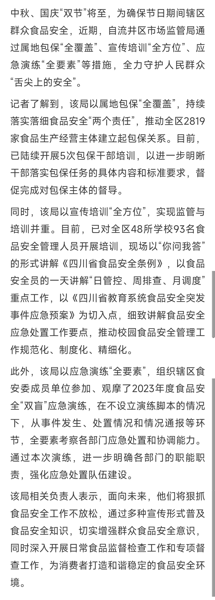 [盐都杂谈] 自流井区多举措保障“双节”食品安全