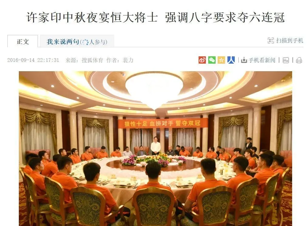 最近一次是今年7月4日,许家印在主持召开恒大足球俱乐部管理会议时表示,俱乐部全体人员要进一步弘扬“狼性十足、协同拼搏、坚韧不拔、锤炼精英”的新广州队精神,全面选拔、大胆任用恒大足校优秀年轻人才,坚定不移走好从恒大足校到广州队的“一条龙”人才培养之路,为中国足球发展和振兴做出贡献。