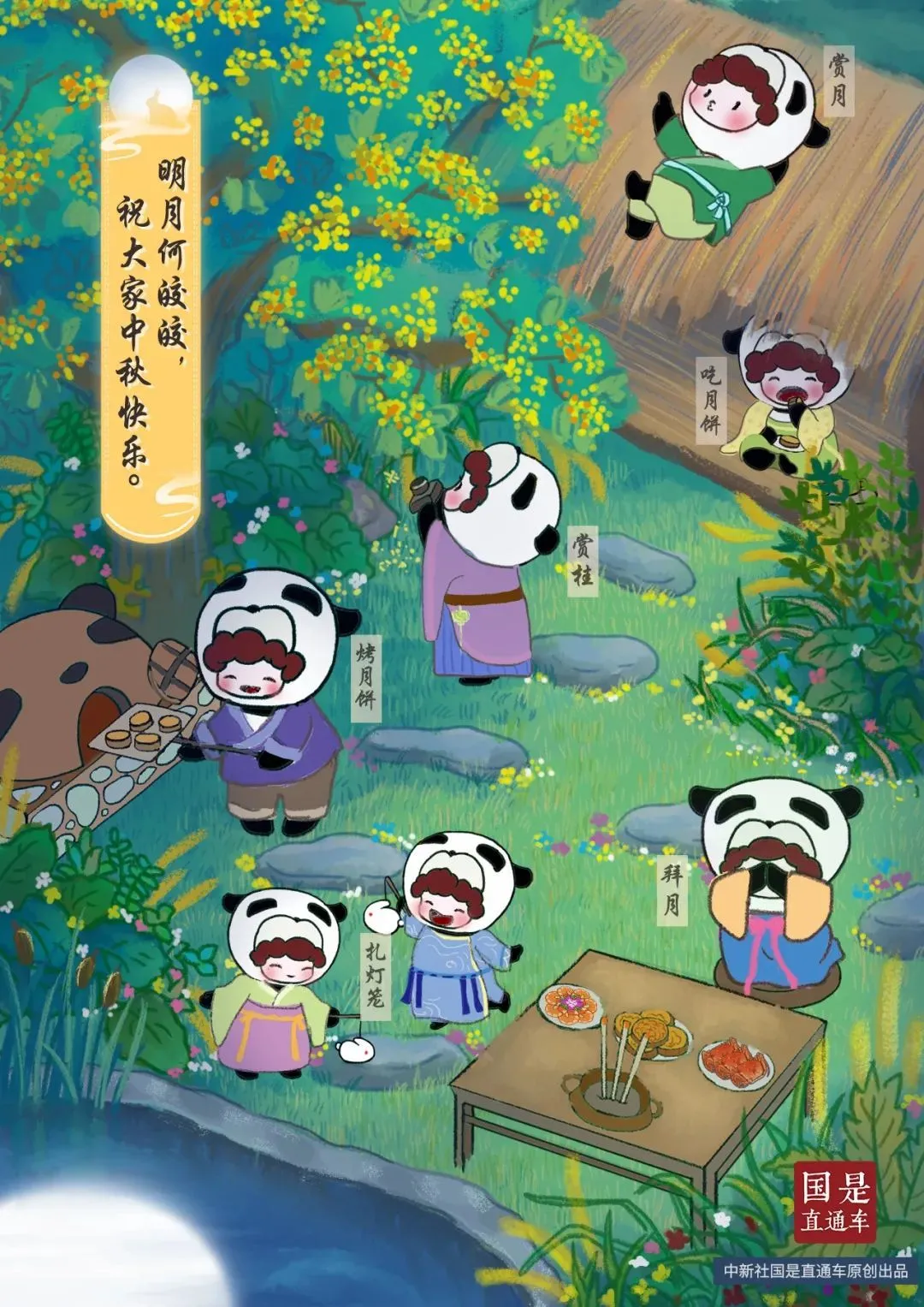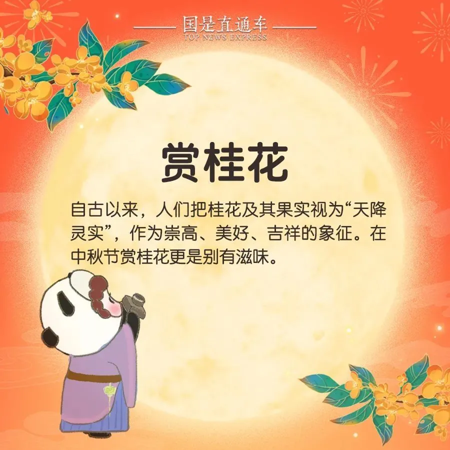 在中秋节,人们会赏月、吃月饼、赏桂花、玩花灯……