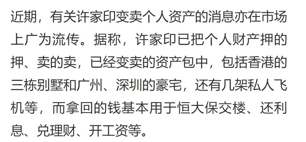 还有传言称,许家印在面对供应商上门讨债时作势要跳楼,等秘书叫来消防撑起气垫后,才扭扭捏捏地从2楼跳下去,给欲哭无泪的供应商奉上一出哭笑不得的滑稽剧。