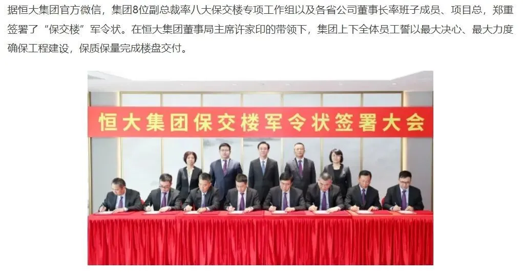 政府还是没有同意恒大把债务风险继续扩散到股市,恒大果断开始躺平。21年8月31日,恒大发布未经审计的中期报告,9月1日许家印就组织了“保交楼军令状签署大会”,仿佛履行合同不是天经地义、而是还需要额外保证的事情,大张旗鼓盖过了中报负债1.98万亿的热度。