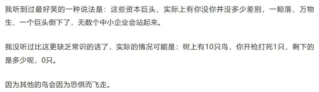 欠债还钱,犯错受罚,但在我们的舆论场上,民营企业在很大程度上不受这些天经地义的道理的管束。因为我国经历了经济转型,可以说绝大多数大资本家的财富都沾着权力、黑恶、垄断等血腥腌臜,所以他们格外上心强调“保护产权”,而不是“保护合法产权”,强调解释权在我的“营商环境”,而不是客观的“依法依规”。
