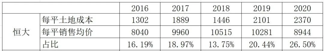 在同一文中,我们戳穿了房地产商编织的“政府拿走了房价的70%”的谣言,估算土地出让金和税费占比平均约为40%,土地出让金的80%又流入了拆迁补偿、土地平整等卖地成本,房地产商才是近20年房地产大涨的最大收益者。而得益于许老板强大的政府公关,恒大的土地成本又是地产商中最低的一档,最大限度地吞食了城镇化一级市场的时代红利。