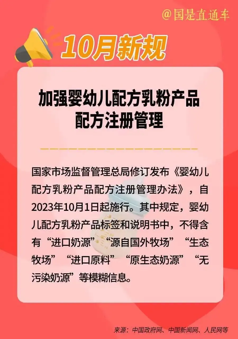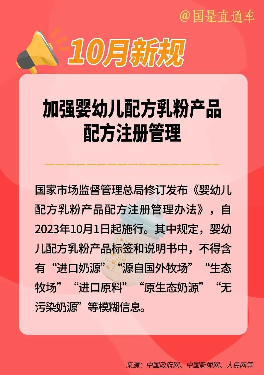 教育部、中国残联共同制定《视力残疾和听力残疾人员普通话水平测试管理办法(试行)》自10月1日起施行。 《办法》一是明确测试方式,视力残疾人员测试的方式为摸读盲文或识读大字版汉字;听力残疾人员测试的方式为写汉语拼音、写命题说话文本、打手语。二是明确测试内容,依据国家颁布的《普通话水平测试实施纲要》执行,测试试卷由国家测试机构统一编制。三是明确测试员上岗应接受专项培训。 婴幼儿奶粉标签不得使用 “进口奶源”等模糊信息