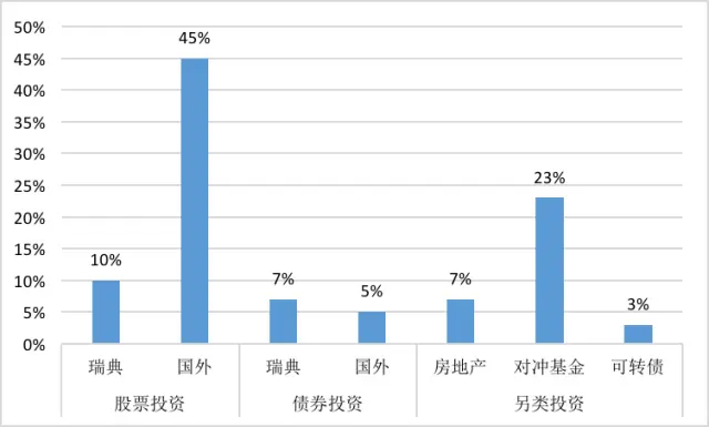 2007年,诺贝尔基金投资于股票的份额占67%,其中大部分为欧美公司的股票。自2008年全球金融危机后,基金会对股票投资的风险规避更加明显了,投资比例基本维持在略高于50%的水平。股票和债券的投资比例双双呈现下降趋势,基金会的重点投资领域随市场走向已经延伸到对冲基金、房地产等高收益的另类投资。如下图所示,截至2014年末,诺贝尔基金会的投资组合大类为股票(55%)、债券(12%)、另类(33%),值得注意的是,对冲基金的占比将近1/4。尽管在危机期间诺贝尔基金会的投资业绩并不乐观,但近两年略有回升,如2013年与2014年的投资总回报分别为16.4%和11.8%。诺贝尔基金会主要的投资收益仍来自于股票(26.6%,2014),此外,私募股权(16.7%,2014)的收益率也向好,2014年5月末新加入的可转债投资在当年底的投资年化收益率达16.7%。