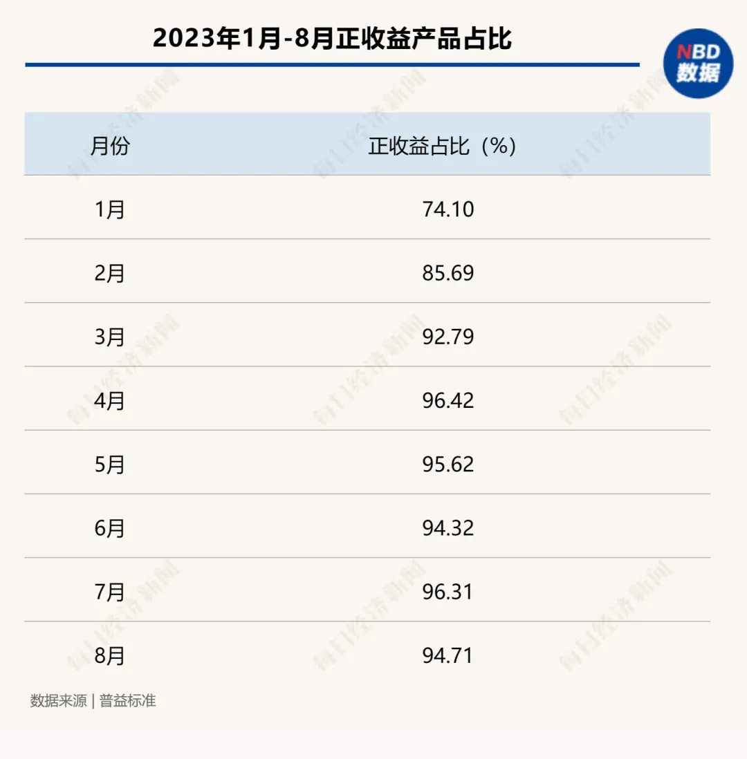 “整体来看,从今年2月以来,超过85%的产品均能为投资者带来正收益。”陈雪花对每经记者表示,其中3月-8月正收益产品占比更是超过90%。