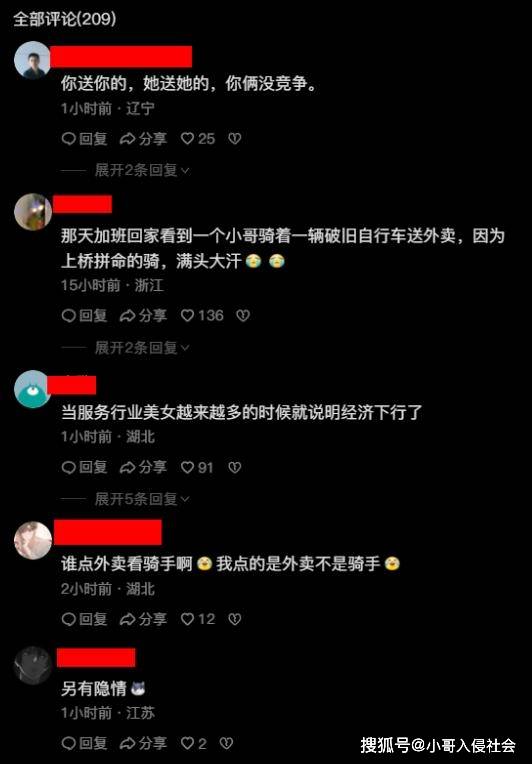 然而就在深夜,男子看到来往的外卖员在街头各种穿梭,突然发现连外卖员都是美女,等半天一个男性也没有。这让其非常感伤和无奈,毕竟在一般人眼中,失业后优先想到的就是进厂和送外卖。