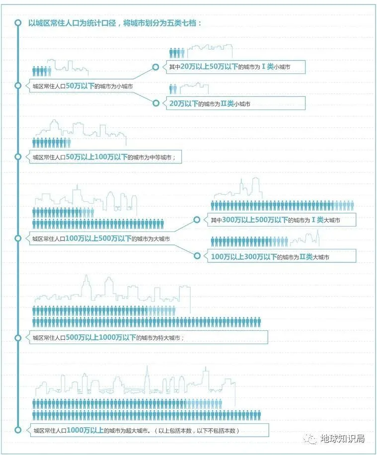 根据2014年11月发布的《关于调整城市规模划分标准的通知》,城区常住人口1000万以上的城市为超大城市,城区常住人口500万以上1000万以下的城市为特大城市。