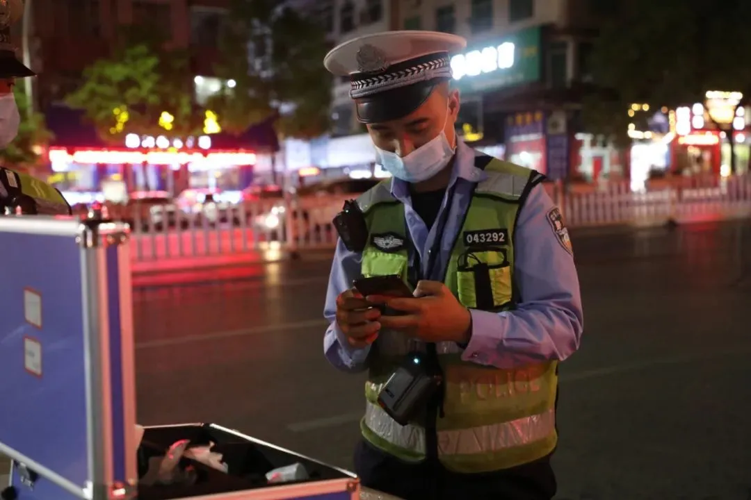 2020年5月6日,李兵在城区交通广场参与酒驾醉驾整治行动。