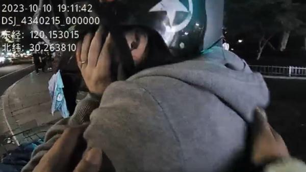 苏杭在北山街附近巡逻时 一名女子在路边抽泣 到达现场后 坐在电动自行车上,泣不成声 “没有,就是压力好大” 女子说着说着眼泪涌了出来 缓缓进行引导 把我当成你的倾诉桶”