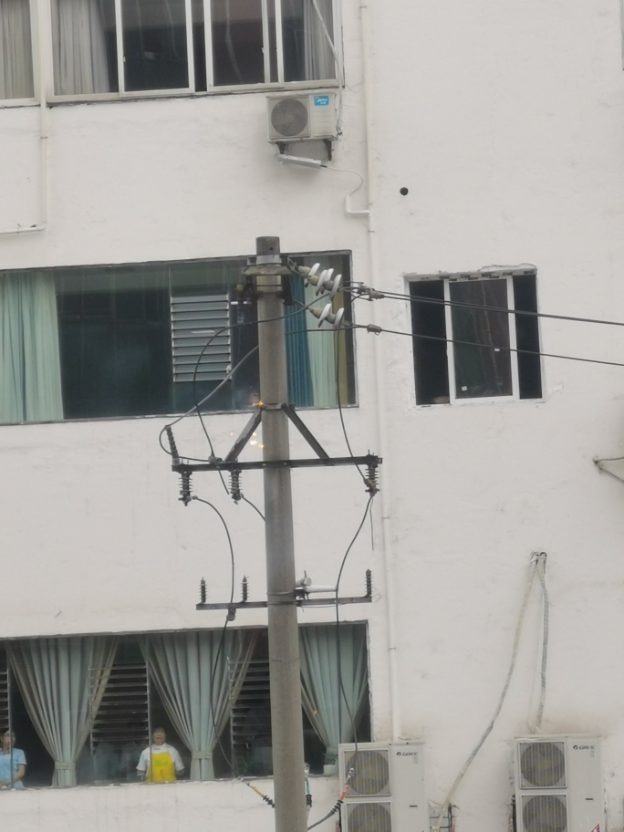 突然一声爆炸巨响,然后就是这样了,还以为是变压器烧起来了,没想到是电线。