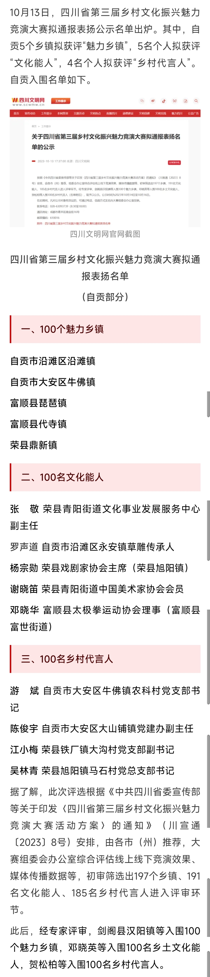 [盐都杂谈] 自贡这些乡镇、个人拟获省级大赛表彰