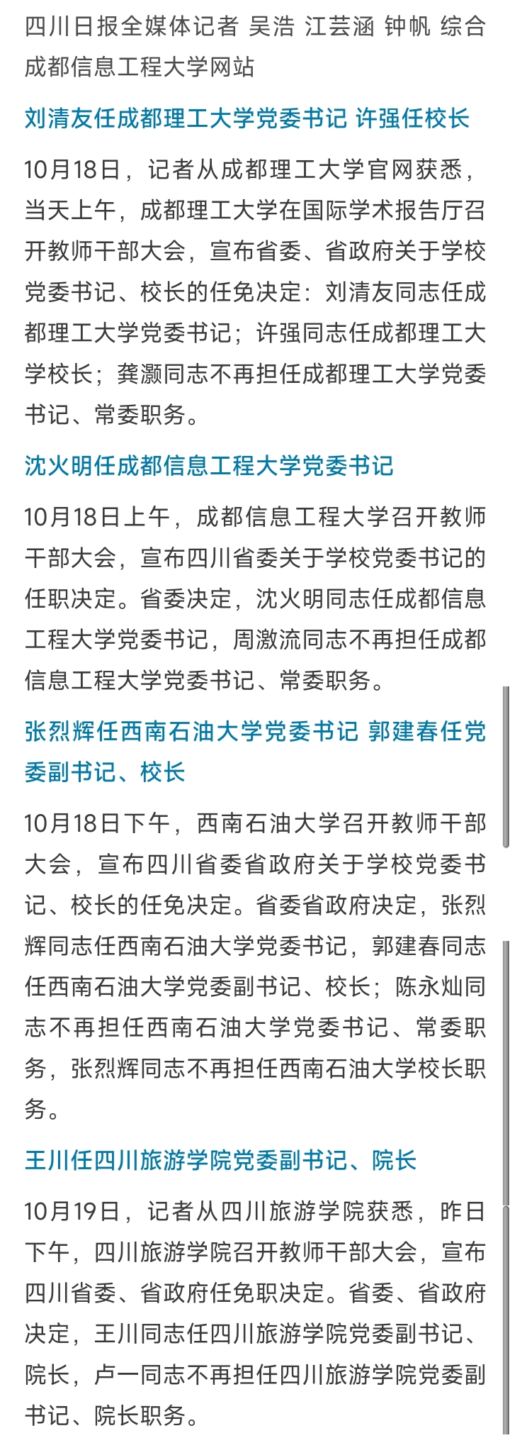[盐都杂谈] 四川最新人事任免 涉及多所高校