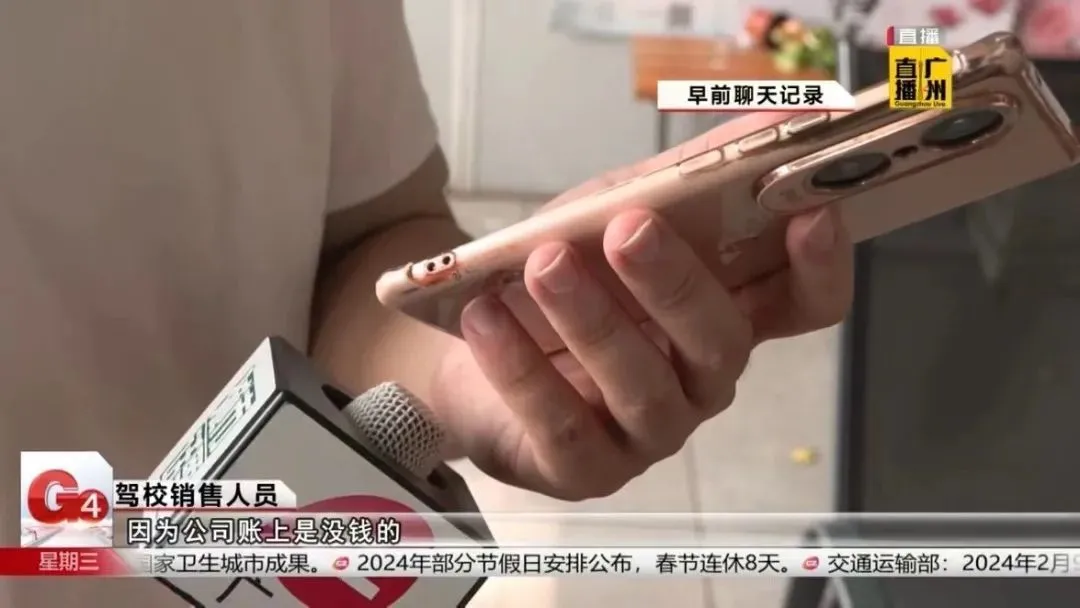 而广州广播电视台报道报道,驾校销售人员告诉记者:因为现在公司账面上是没钱的,就算学员退费,他也不知道能不能退费成功。