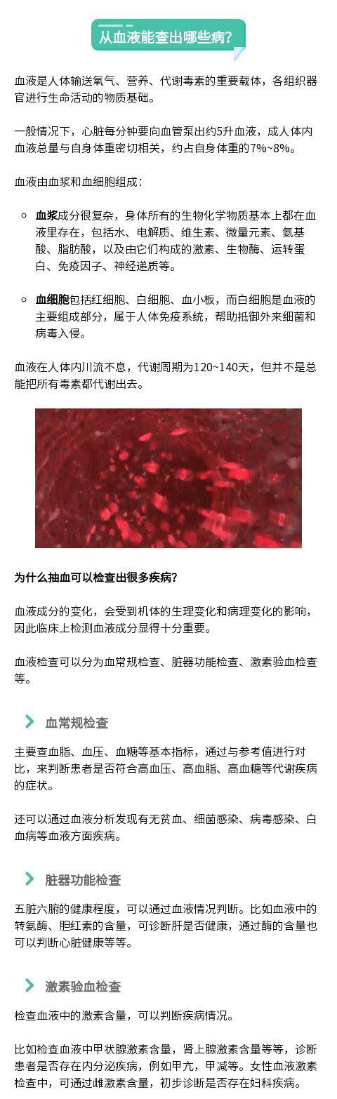 不管是体检,还是去医院看病,似乎“抽血”这个项目怎么都躲不过,有时甚至一抽就是好几管。有人看着自己的血流进一个个试管中,除了“肉疼”,还免不了一阵“心疼”。小到咳嗽感冒,大到肺炎肿瘤,血液检查究竟能查出什么病?为什么抽血不可避免?戳图,一次说清关于抽血的疑问↓↓