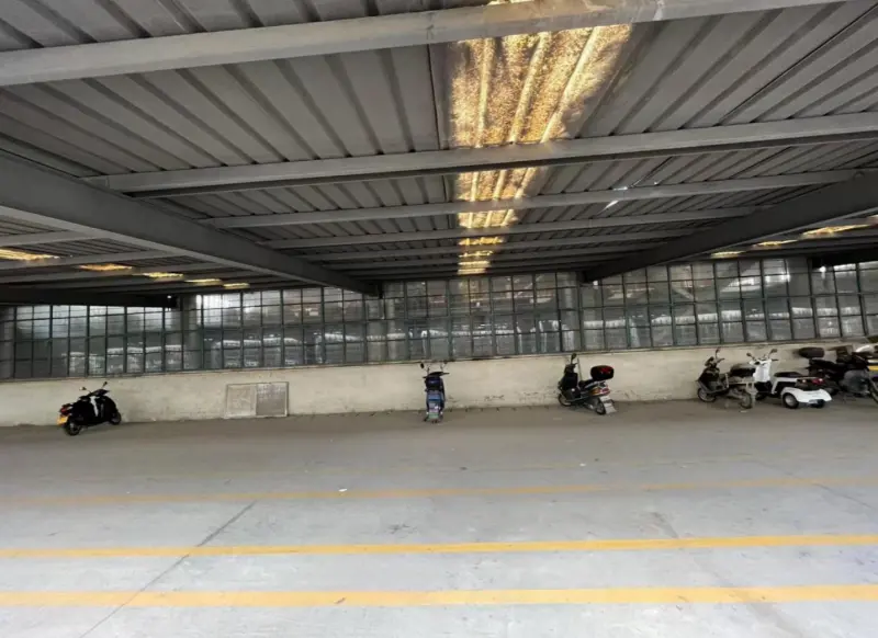 记者透过工厂栅栏看到,院内停车棚里零散停放了数辆电动车,厂房内部没有机器设备运转和人员工作的迹象。