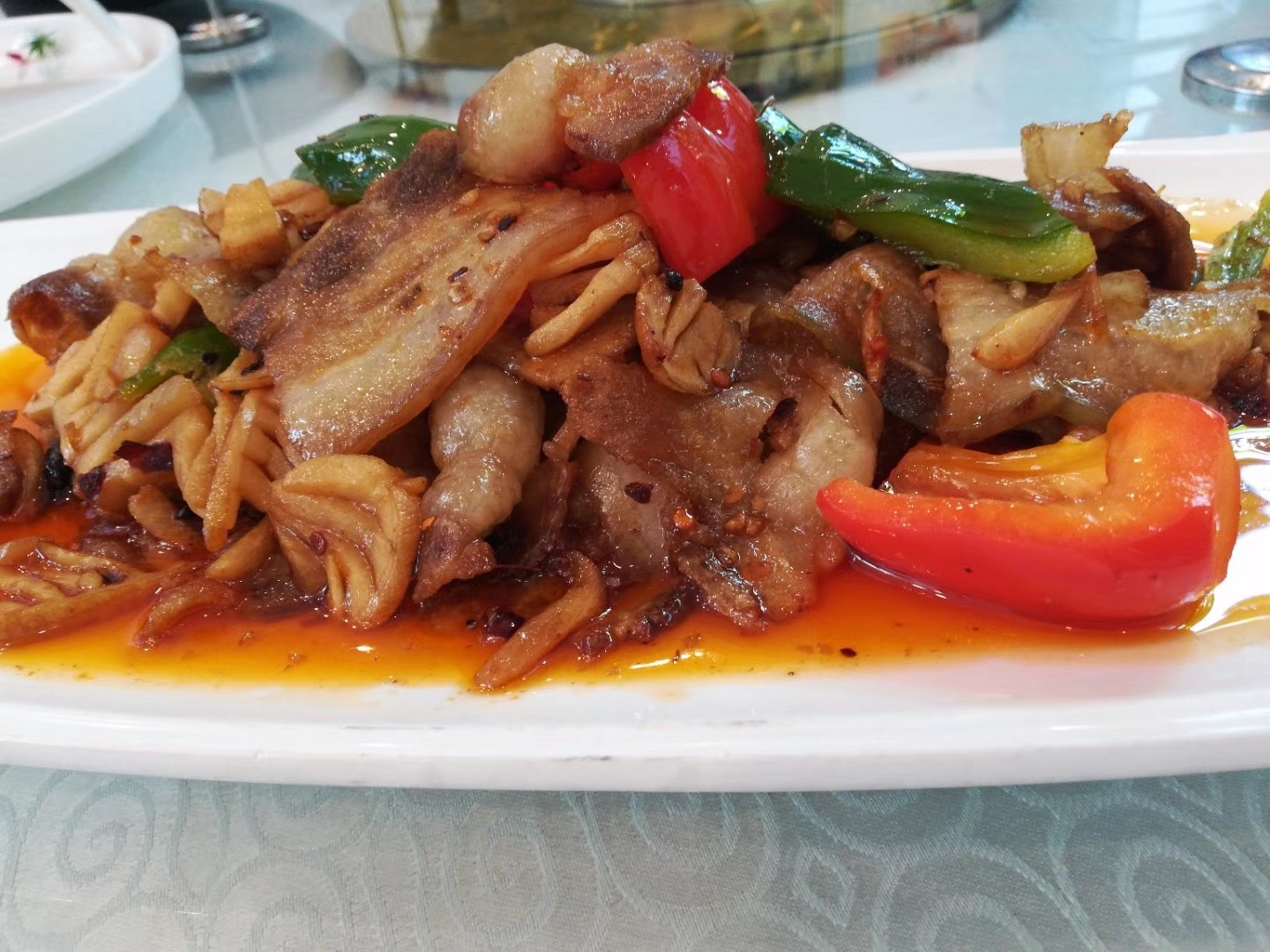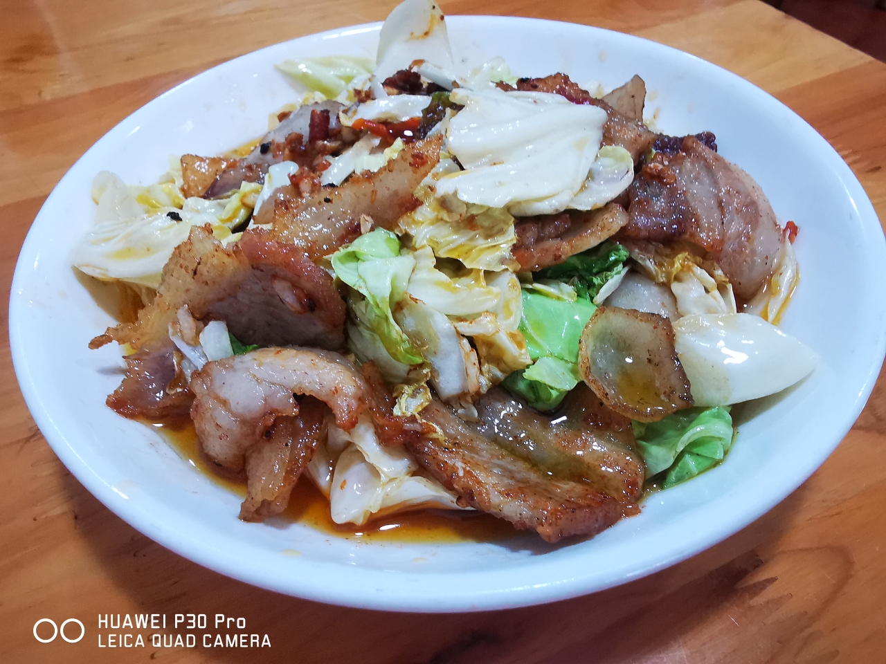 莲花白炒回锅肉也是一种常见的作法,吃起来油润鲜嫩。除此之外,大葱、木耳、芹菜、蒜苔、芽菜、豇豆干、豌豆角等等,都可以用来炒回锅肉,只要你喜欢,你可以找任何蔬菜或干菜来作回锅肉的俏头。